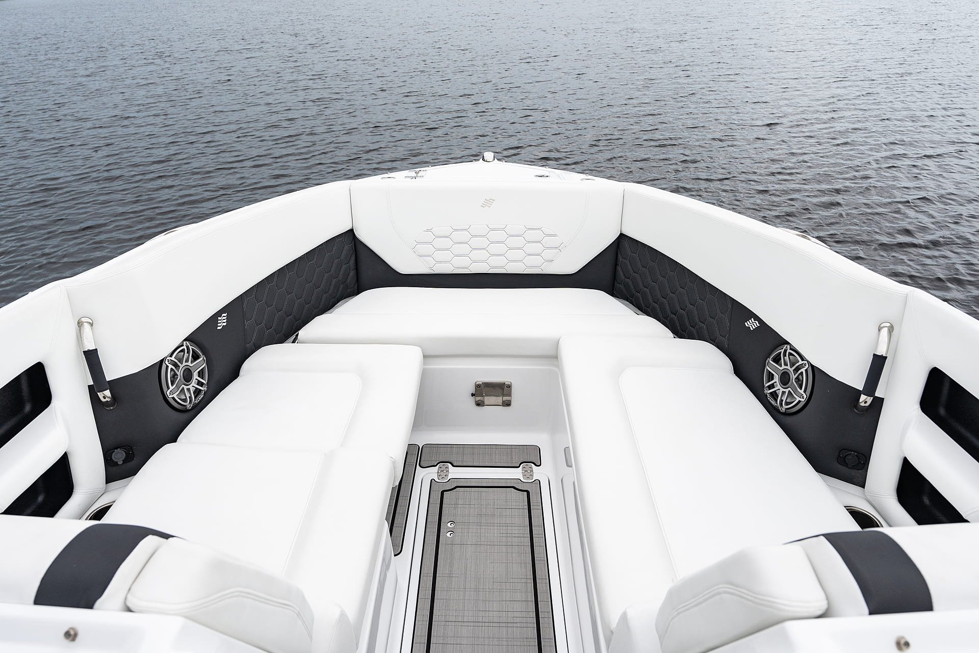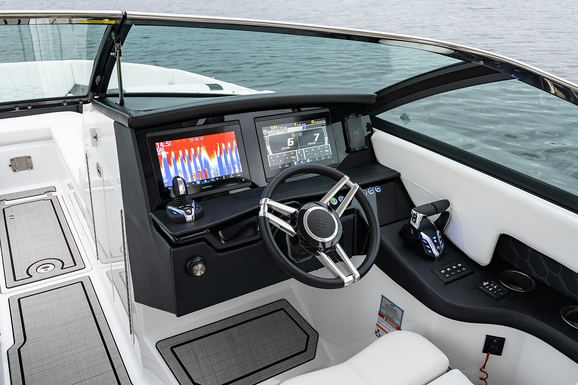 The HD2C is built for “moments together” on the water, featuring an optimized cockpit space and twin sport bucket seats. With its signature windshield and spacious under-seat storage, it provides big-boat versatility in an approachable package. It is the perfect entry-level vessel for family fun, combining a large bow with a high-quality standard stereo system.