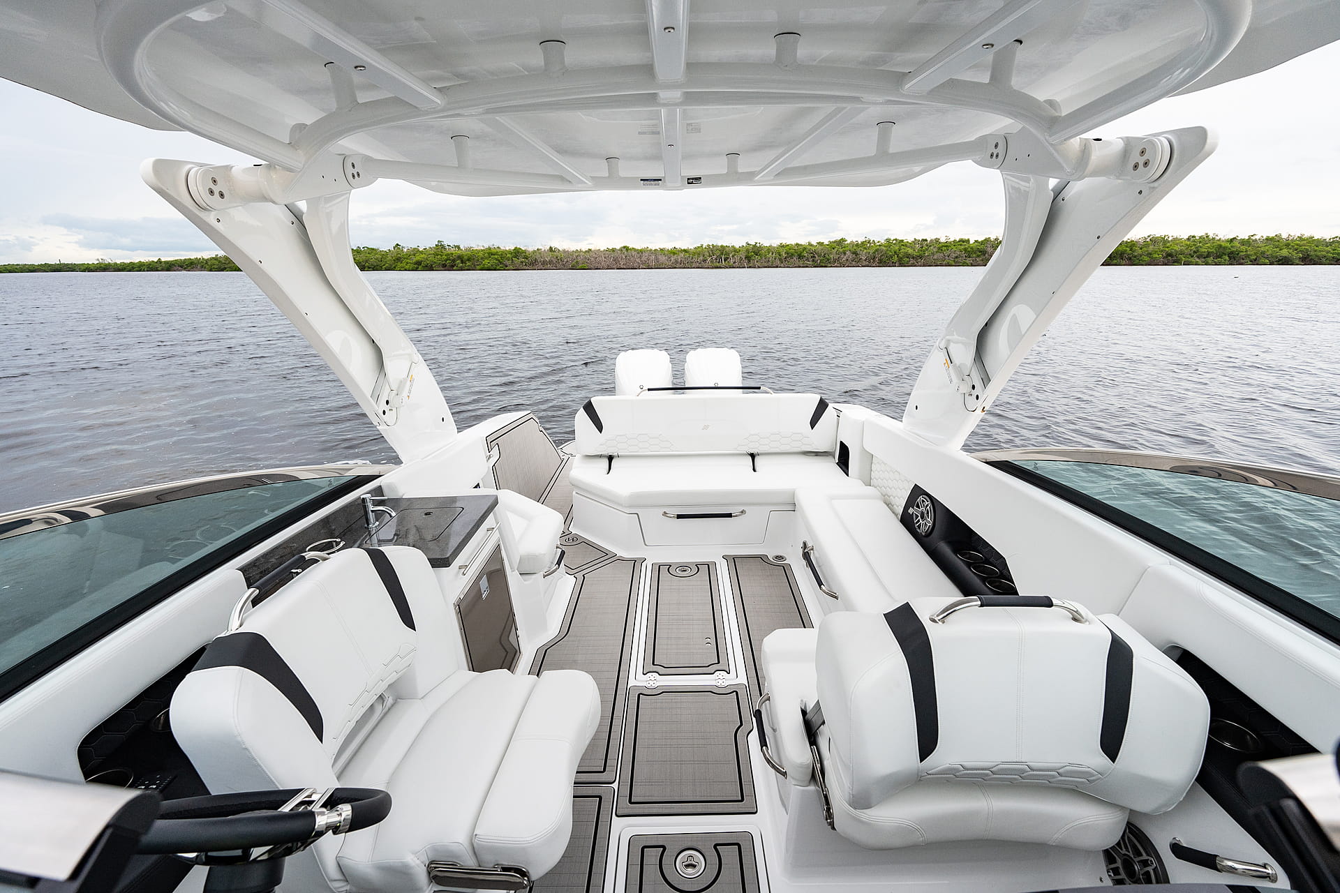 Crafted for family adventures and longer getaways, the NC 1095 Fly S2 reimagines life on the water with a completely redesigned flybridge for sharing memorable moments. The interior is defined by a “smarter use of space,” featuring a long galley that extends seamlessly into the cockpit and an owner’s cabin with private access to a large head. At anchor, you can deploy the modular cockpit and enjoy panoramic views from the elevated flybridge loungers.