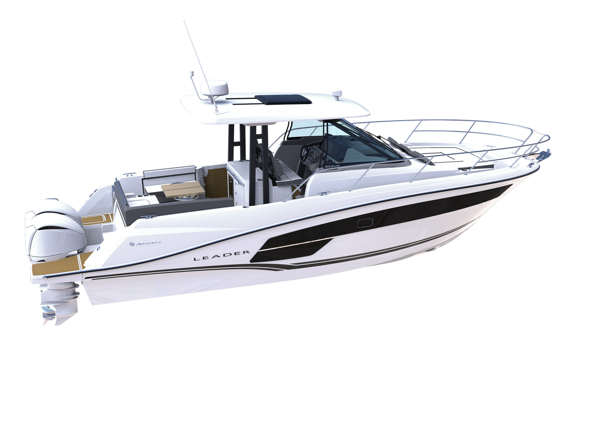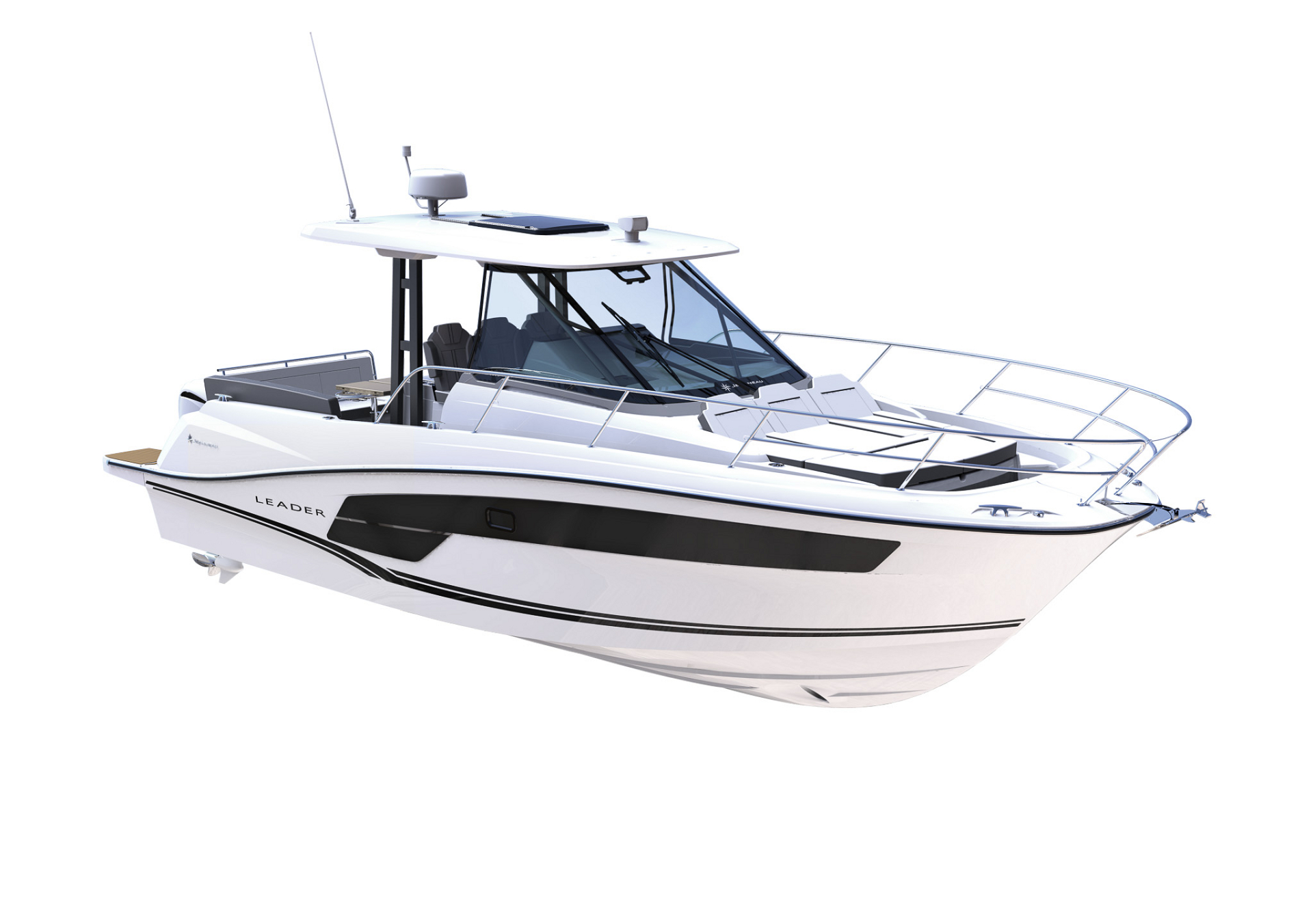 The Leader 10.5 WA invites you to extend your stopovers on the water in the greatest comfort. Perfectly integrated into the profile of the boat, the optional T-top enables you, with the addition of a sun awning aft, to dine in the shade. The outdoor galley, backing the seats of the helm station, includes a fridge, electric grill, a gas burner, storage, or even a live well to hold the catch of the day. Down below, optionally equipped with air conditions, the spacious and com-fortable interior also features a second separate cabin aft. Forward, the traditional breakfast nook converts into a V-berth with separation curtain. This day boat has everything to give you a taste of cruising and nights at sea.