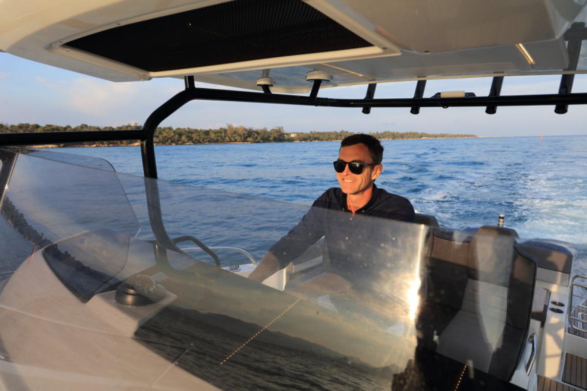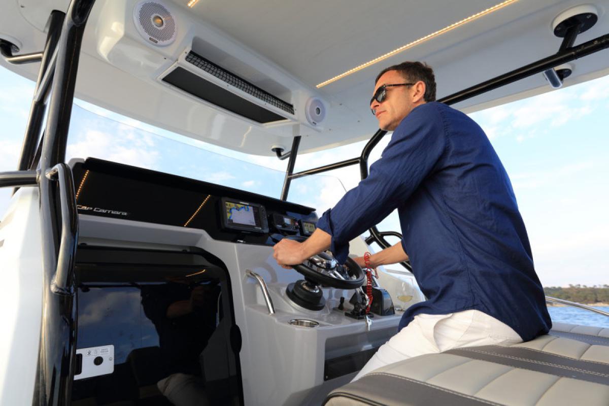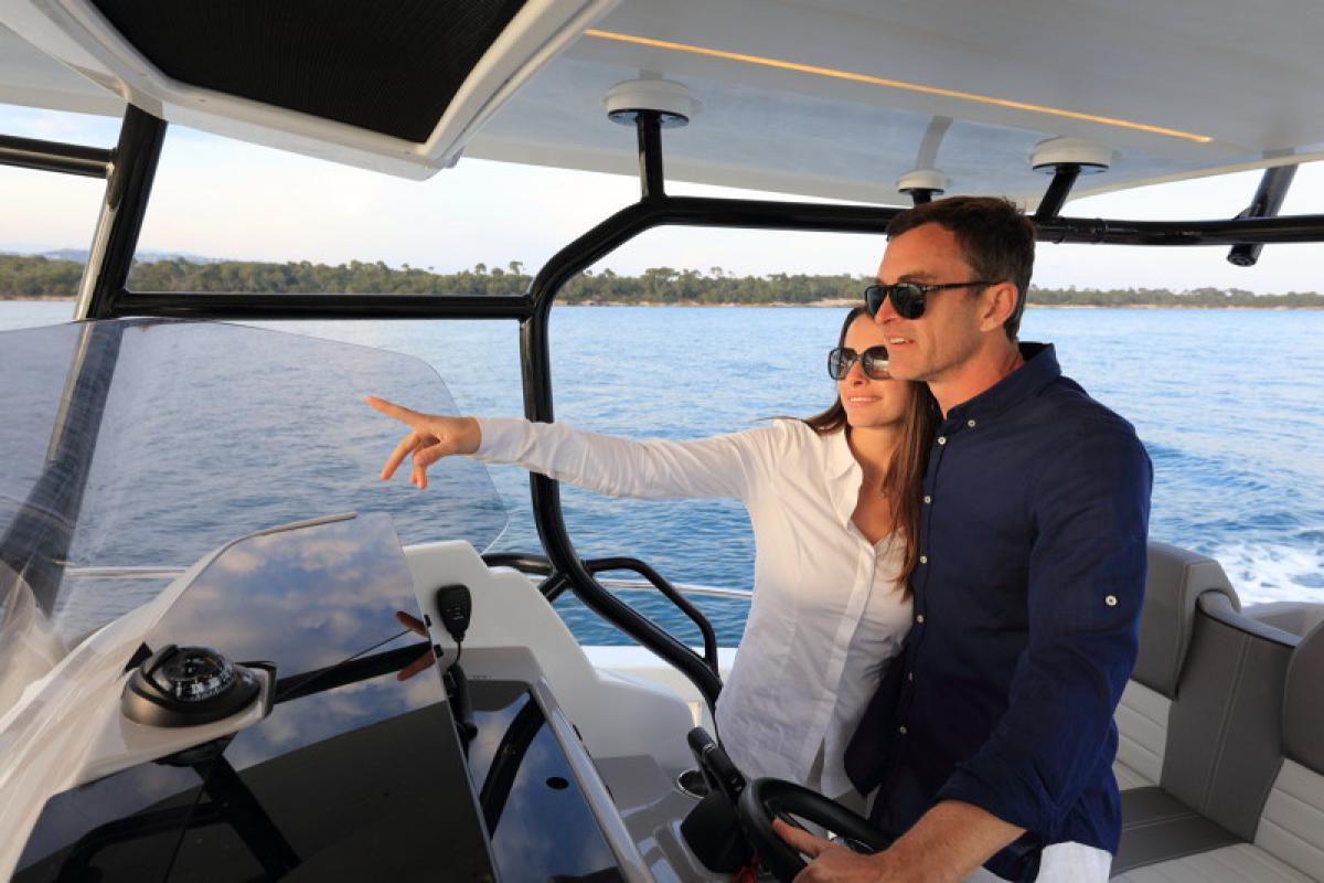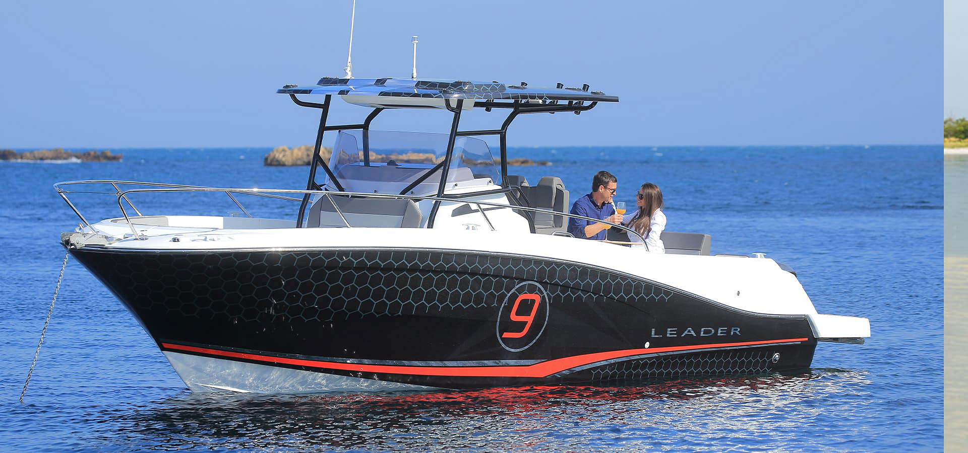 The Jeanneau Leader 9.0 CC is a spacious 29-footer capable of carrying 11 guests in comfort as there is a place for everyone throughout the boat. The helm features three seats perfectly situated so the full array of electronics is always withing view. The cockpit features two side bench seats and an aft bench seat with storage underneath. The Leader 90.0 cc is perfectly adapted for fishing equipped with leaning post, live well, rod holders and cooler/fishbox. However, the boat is also adaptable for family outings as it can be equipped with a cockpit grill or stove, sink and refrigerator. Of course, there is lots of storage.