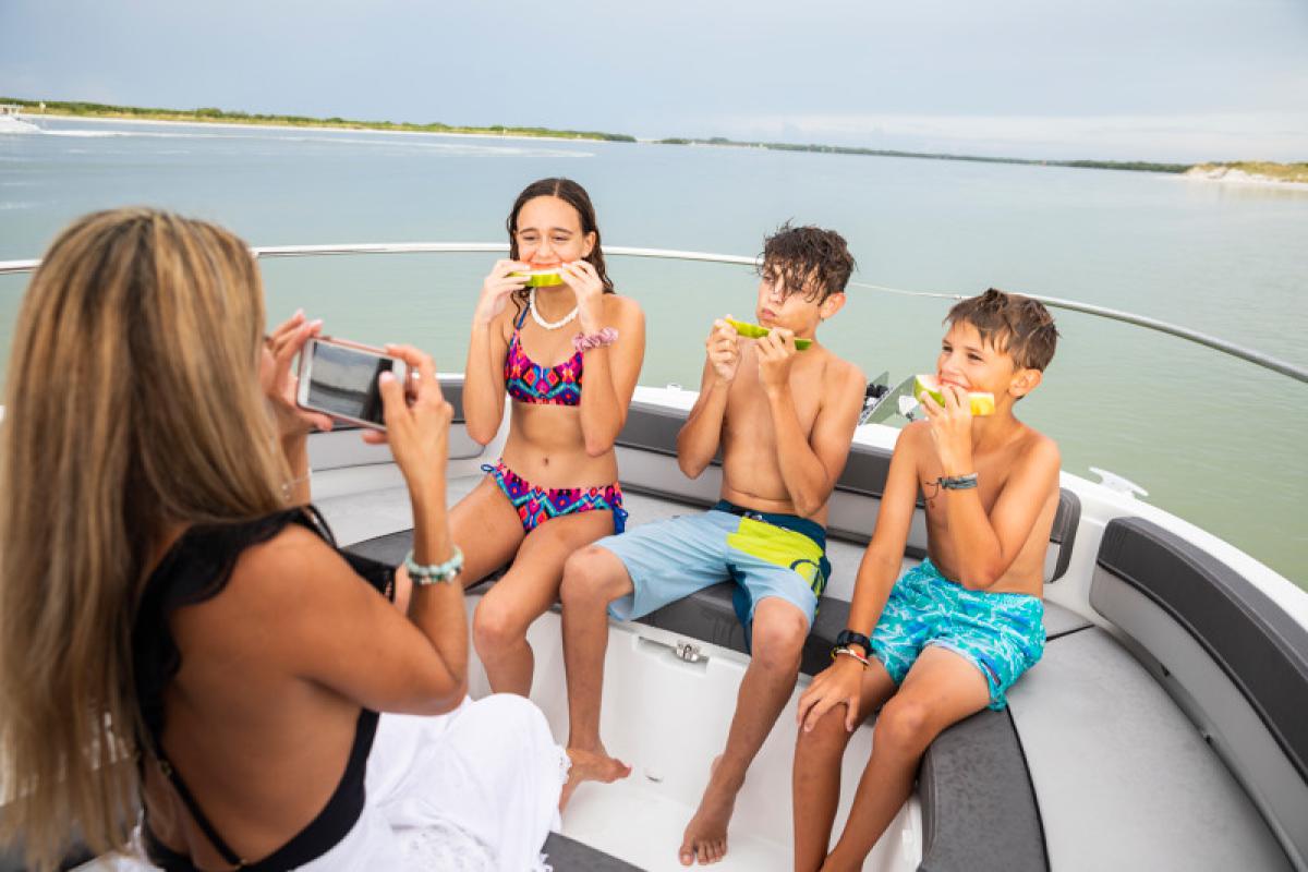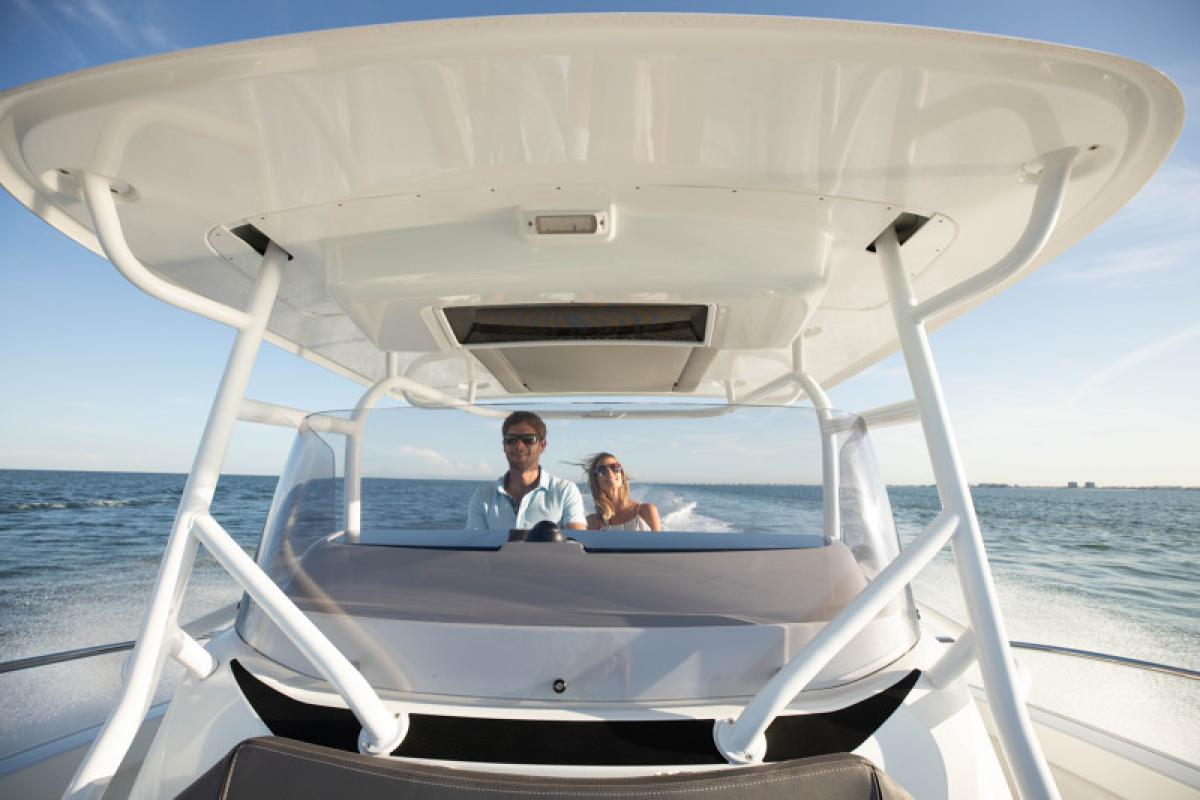 For power, there are two engine packages available, a pair of Yamaha or Mercury 200 Horsepower or Yamaha 250 Horsepower, which both come with electronic controls.