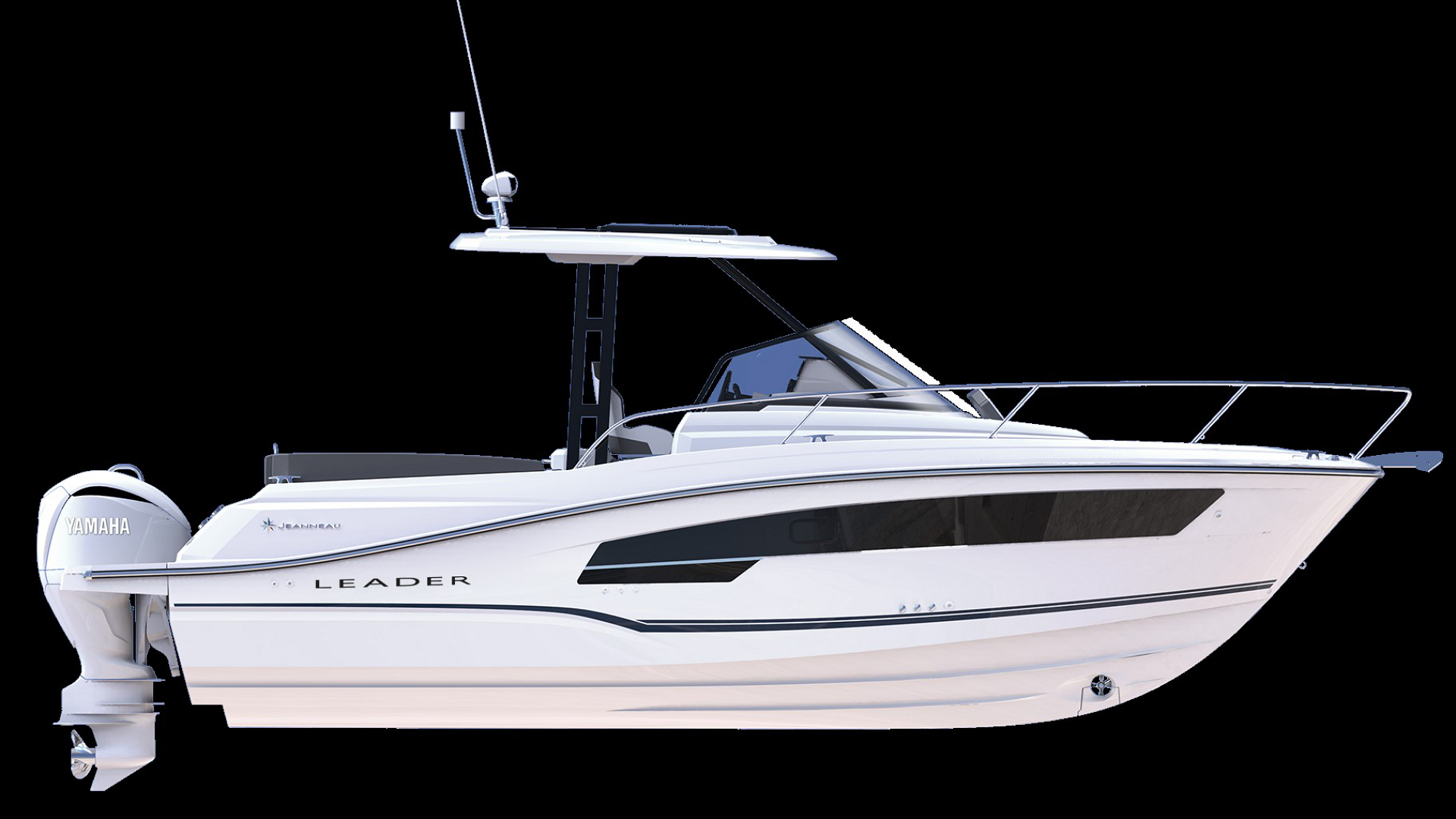 Boasting a V-shaped hull by Michael Peters and twin engines for up to 2 x 250 HP, the Leader 9.0 WA will delight thrill-seekers and fans of express crossings, the wind in their hair, with top speeds of over 40 knots. With elongated lines, a T-top, a protective glass windscreen, and large windows in the hull… this boat, inspired by the Leader 10.5 WA and 12.5 WA, boasts an elegant, distinguished, and contemporary style, yet one that is also synonymous with safety and fun for the whole family.