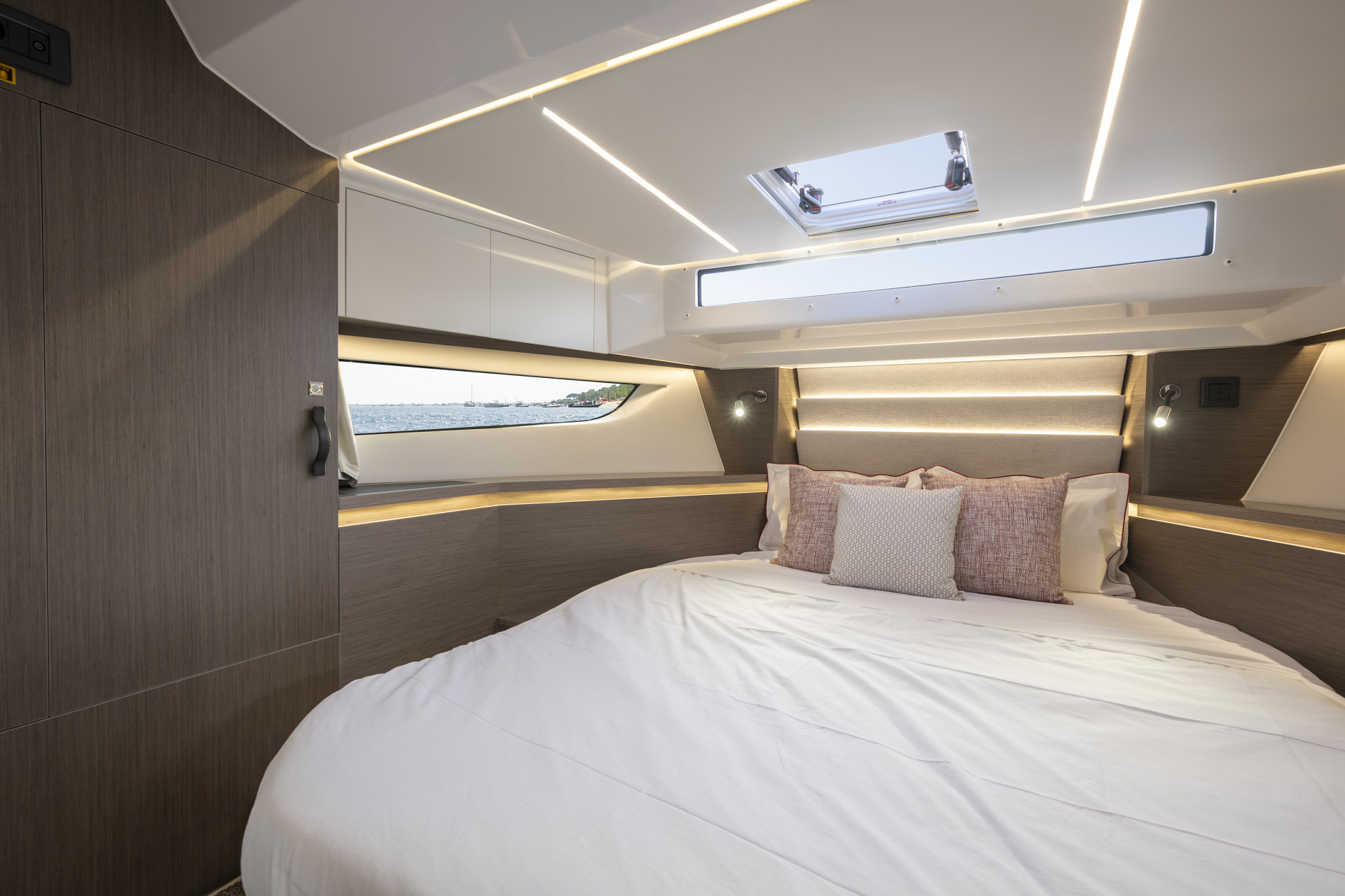 The NC 1295 Coupé adapts effortlessly to every requirement, offering the full spectrum of the line’s advantages – from modular living spaces to intelligent layouts – all within a nearly 13-meter vessel. Enjoy exceptional comfort and ample space with three cabins featuring expansive windows and abundant storage alongside two well-appointed head compartments, ensuring you can escape and indulge in extended cruising experiences.